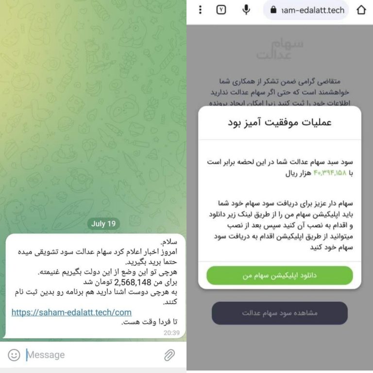 چندی پیش خبری تحت عنوان “کلاهبرداری با ارسال پیامک جعلی سهام عدالت” سر تیتر اخبار ایران شد. این خبر که شاید برای بعضی از افراد عجیب به نظر برسد، نوعی از حمله فیشینگ بود که با استفاده از پیامکی ساختگی که تحت عنوانین نظیر “دریافت سود سهام عدالت”، “ثبتنام جاماندگان سهام عدالت” و … کاربر را ترقیب به کلیک بر روی لینکی مخرب میکرد.